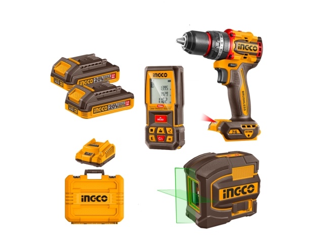 Combo Ingco COSLI250586 20V Taladro atorn. c/percutor 96nm + llave de impacto 850nm c/ 2 bat 4.0ah + cargador + accesorios
