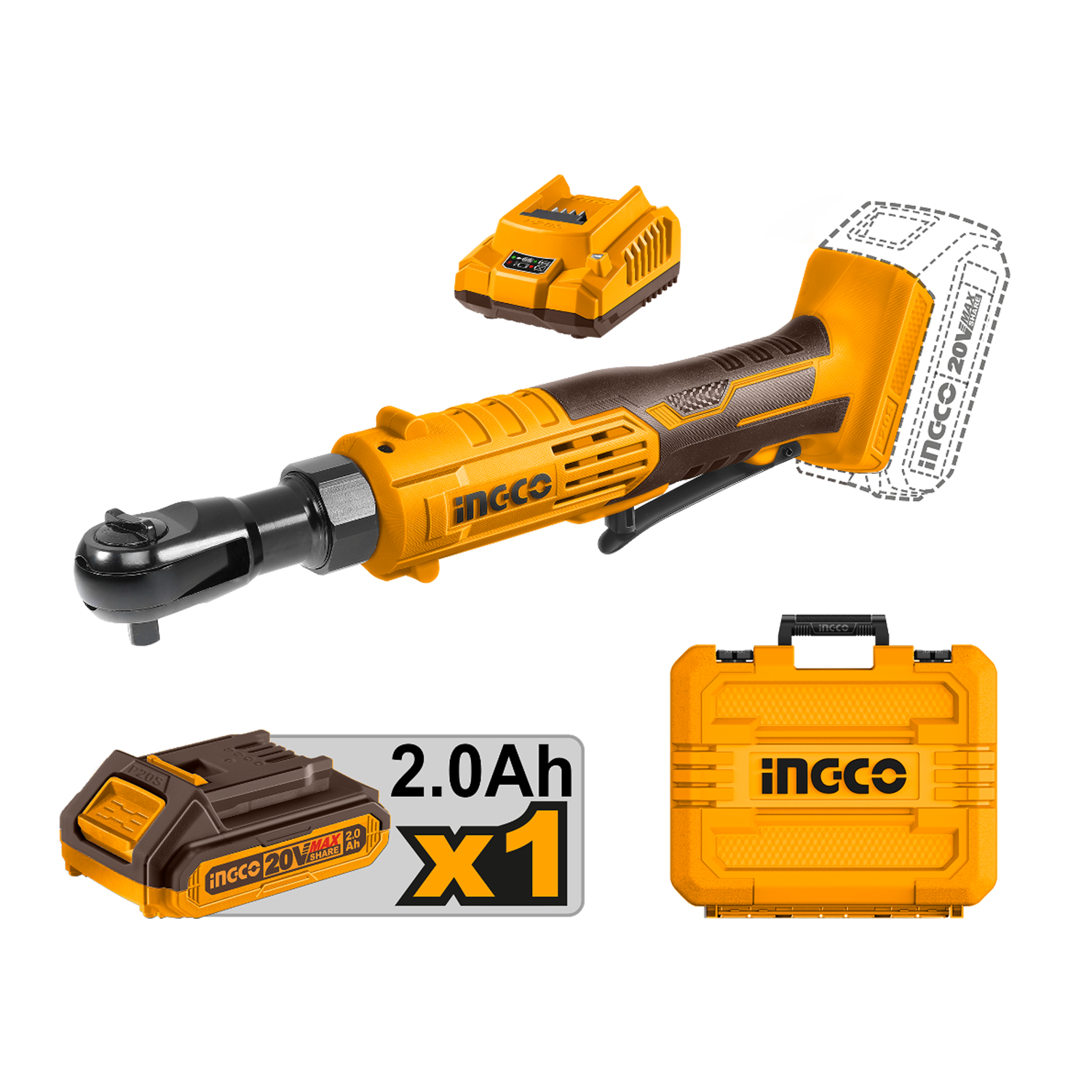 Llave criquet Ingco CDRLI2060152 20V (1x2.0Ah y valija)