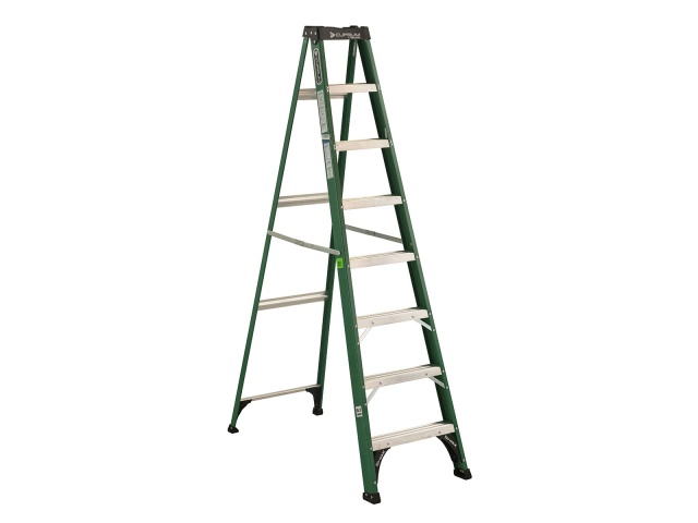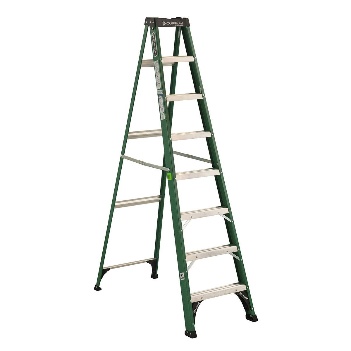 Escalera de tijera de fibra de vidrio con tapa ProTop®, Shox® y bota profesional, de 8 pies de altura y capacidad de carga de 175 Kg. Tipo II