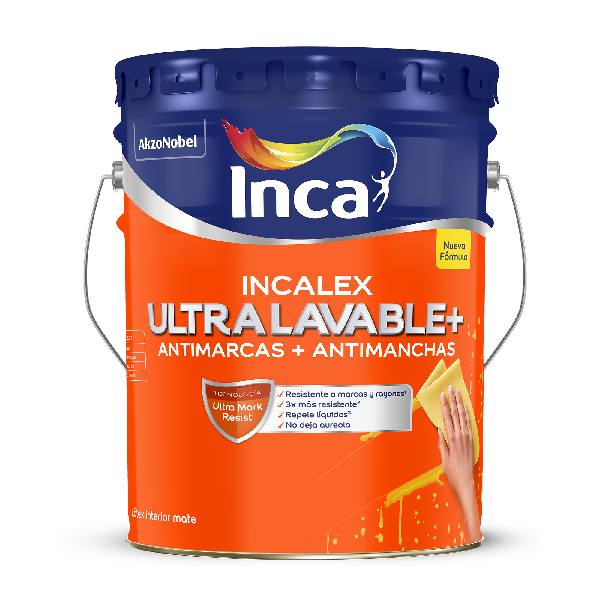 Gracias a su innovadora TECNOLOGÍA ULTRA RESIST, es 3 veces más resistente al lavado*, antimanchas, repele líquidos y no deja aureola.